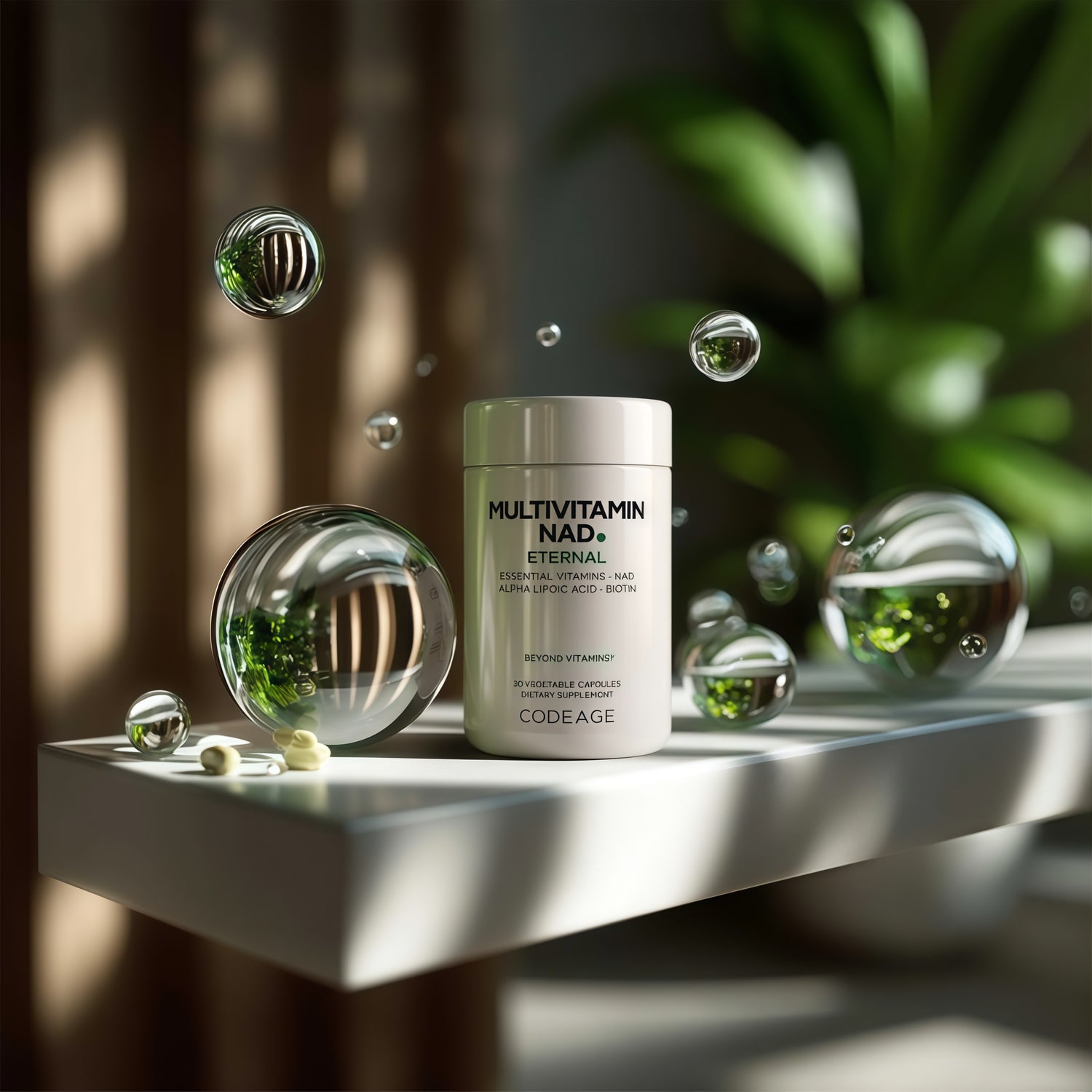 It’s an advanced multivitamin formula that includes NAD⁺ plus a full B-complex, methylated B12 & folate, P5P (active B6), vitamins A, C, D3, E, and K2—all in one.
